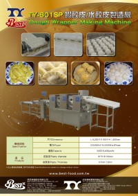 Shrimp dumpling wrapper which made of wheat starch can be produced by TY-801SP automatically. You would save time and money, also get higher production capacity and better quality of dumpling wrapper with regular diameter and thickness. The capacity can reach up to 6, 000 units per hour. With special design dough sheeting mechanism, dough wrappers can keep taste as handmade.