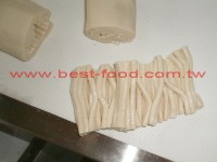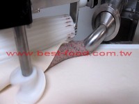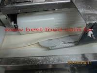 Coloque la hoja de masa bien presionada en la TY-810, la máquina transporta la hoja de masa...