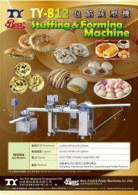 TY-812 बन मशीन का निर्माण स्टफ्ड बन और गोल आकार के बन को बनाने के लिए किया गया है, इसमें भरी हुई मसाला निकालने की योजना और एनक्रस्टिंग मशीन संपन्न है जो मांस वाले बन, लाल बीन वाले बन, छोटे स्टीम्ड पोर्क बन (शाओलोंगबाओ), करी मांस बन, शाकाहारी खुम्बी बन, तिल वाले बन, शौ ताओ (बीन पेस्ट भरी हुई बन), बांस शूट वाले पोर्क क्यूब बन... आदि उत्पन्न करने के लिए है।