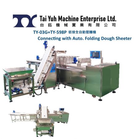TY-3000L 多層次印度抓餅成型機所設置的特製打薄機、奶油擠出機、麵皮摺疊機可全自動生產多層次酥皮。打薄機特製滾輪及傳動機構,減少對麵帶的受力,避免破壞麵皮組織及層次。...
